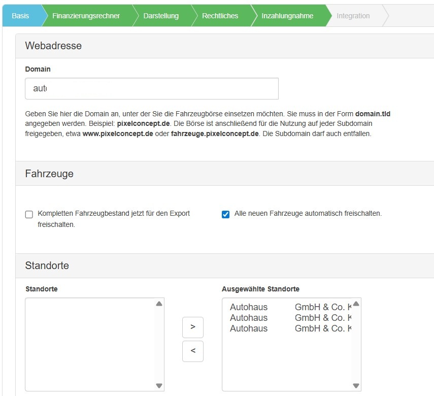 Fahrzeugbörsen aktivieren. Er kann für einen Standort gebucht werden oder auch für mehrere. Nach Aktivierung ist der Marketplace unter