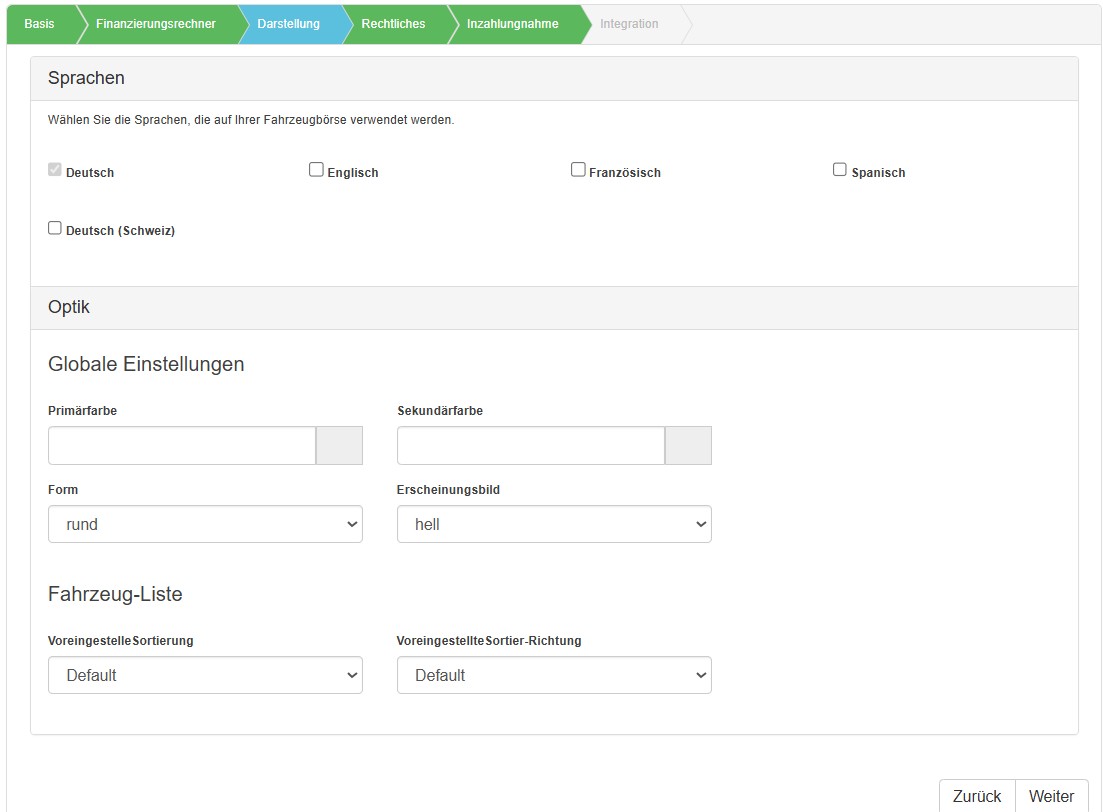 Die Primärfarbe definiert die farbliche Darstellung der Schalflächen, damit sich der Marketplace in Ihre Webseite farblich integriert.