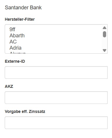 Bitte tragen Sie hier die gewünschte Ausgabe der Finanzierungen / Leasings ein. Die Daten sollten mit den Vorgaben zu
