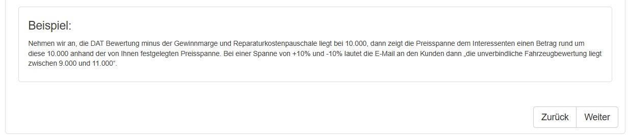 Die Werte der Inzahlungnahme sind für die Berechnung des automatisch kommunizierten Inzahlungnahmepreises an den Interessenten relevant.