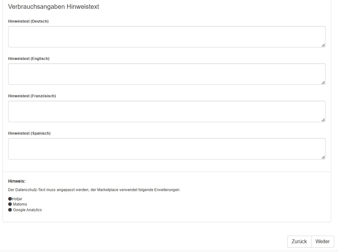 Je nach aktivierter Bankschnittstelle müssen Daten eingetragen werden die Sie von der Bank erhalten. Gegebenenfalls muss auch die Domain des Marketplaces von der jeweiligen Bank für die Bankschnittstelle freigegeben werden.