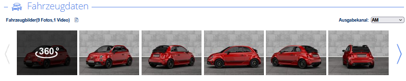 Die Fahrzeugdaten zeigen eine Übersicht über die Videos und Bilder (mit verschiedenen wählbaren Ausgabekanälen) sowie in separaten Reitern Daten zum Fahrzeug. Bei Auswahl eines Reiters werden die dazugehörigen Daten unterhalb des Reiters dargestellt.