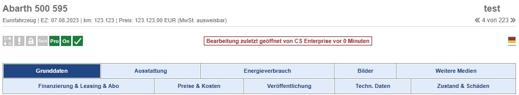 Im Bereich der Fahrzeugbearbeitung werden Daten des inserierten Fahrzeugs eingetragen, modifiziert oder gelöscht. Weiterhin können Daten angereichert, 3D-Katalogbilder generiert / Bildoptimierungen gestartet, Finanzierung- und Leasingangebote ...