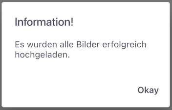 Das erfolgreiche Aufspielen von Bildern wird bestätigt.