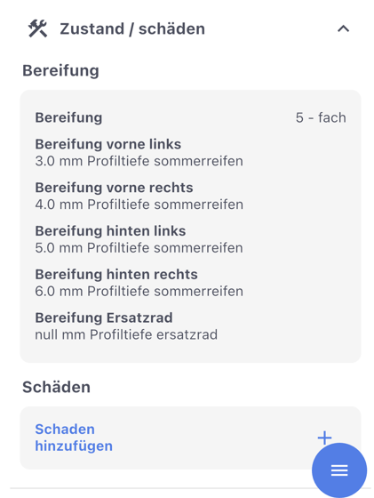 sowie direkt im Bereich "Zustand und Schäden".