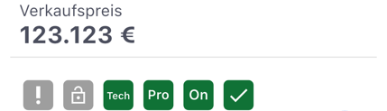 Der Verkaufspreis sowie die Statussymbole werden gezeigt.