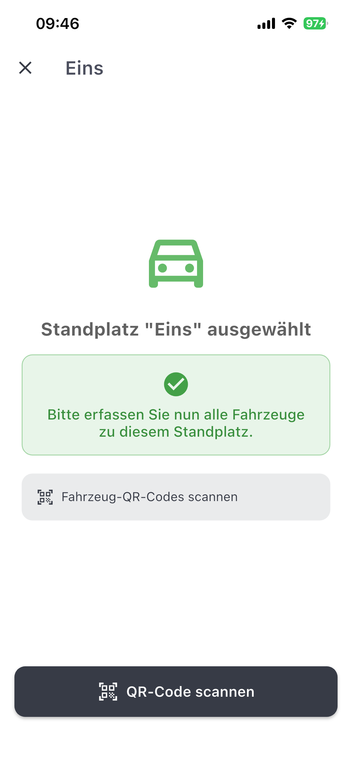 Nach Bestätigung des Standplatzes können die Fahrzeuge am Standplatz erfasst werden:
