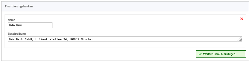 An dieser Stelle können mehrere Banken einschließlich Adresse eingetragen werden, die bei der Erstellung
